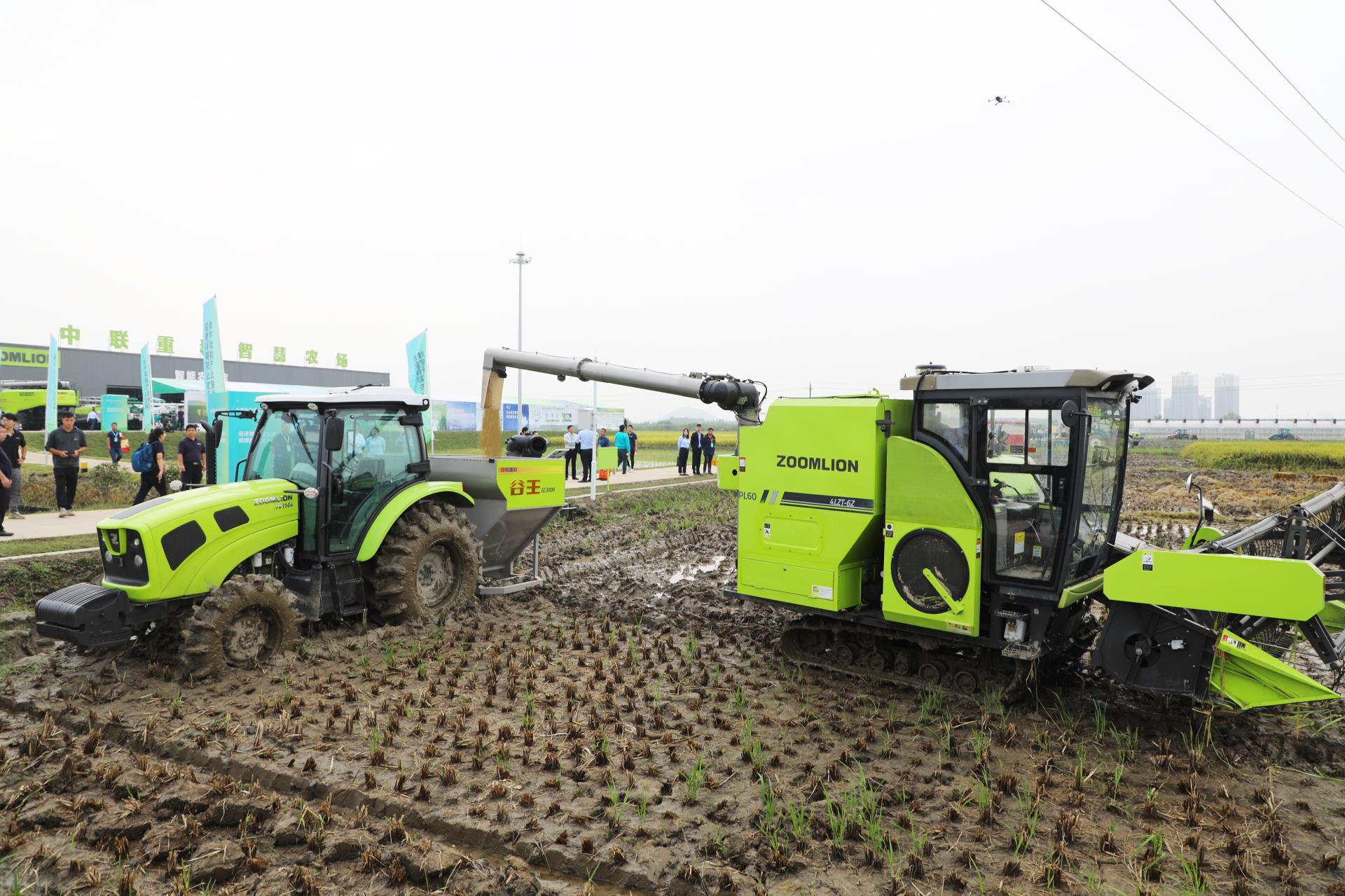 △中联重科智能农机水稻无人化收获和卸粮
