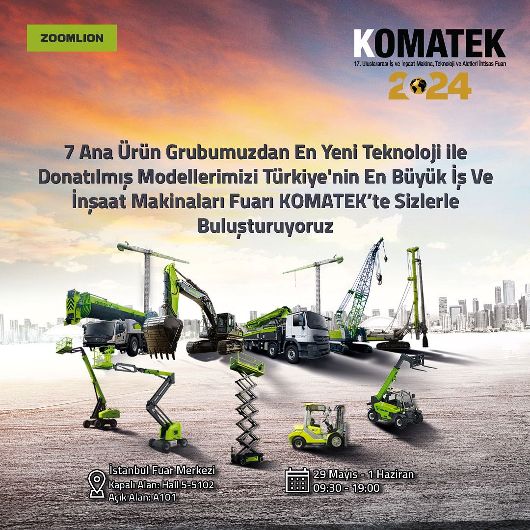 5月29日—6月1日,**17届土耳其国际建筑机械,技术和设备贸易展览会(以下简称土耳其KOMATEK展会)将在伊斯坦布尔展览中心举行,装备制造龙头企业中联重科,将携旗下工程起重机械,土方机械,高空作业机械,建筑起重机械,混凝土机械,基础施工机械,工业车辆等7大类30余款产品隆重亮相 宅男视频, 。