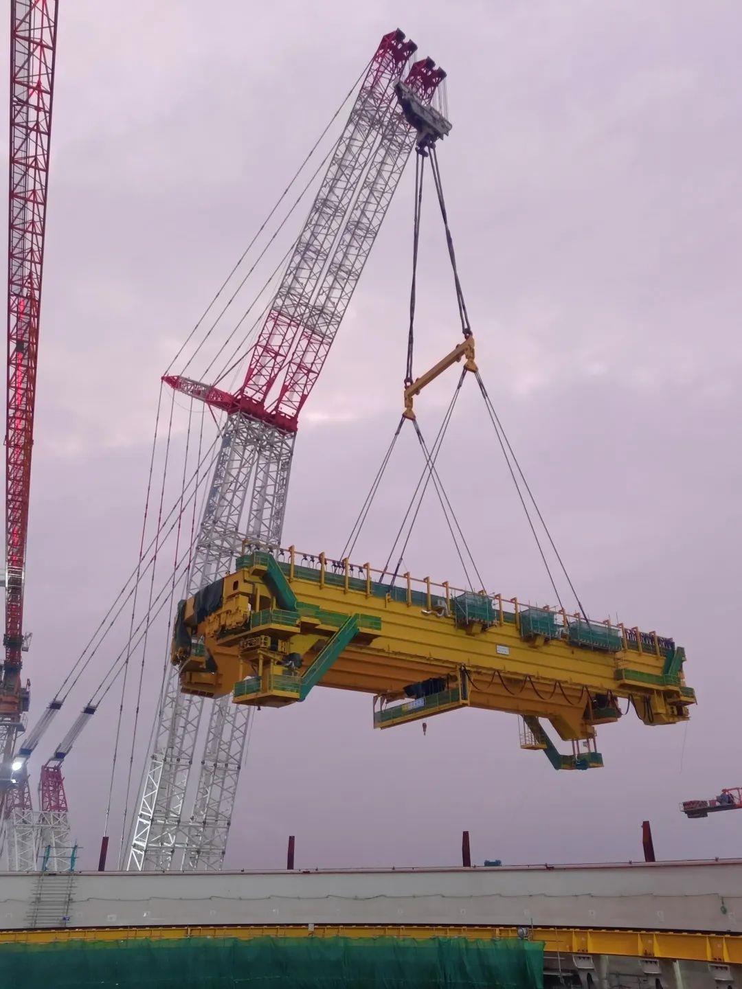 ▲中联重科起重机正在进行昌江核电4号机组环吊桥架整体吊装(图片源于“华能昌江核电”公众号)