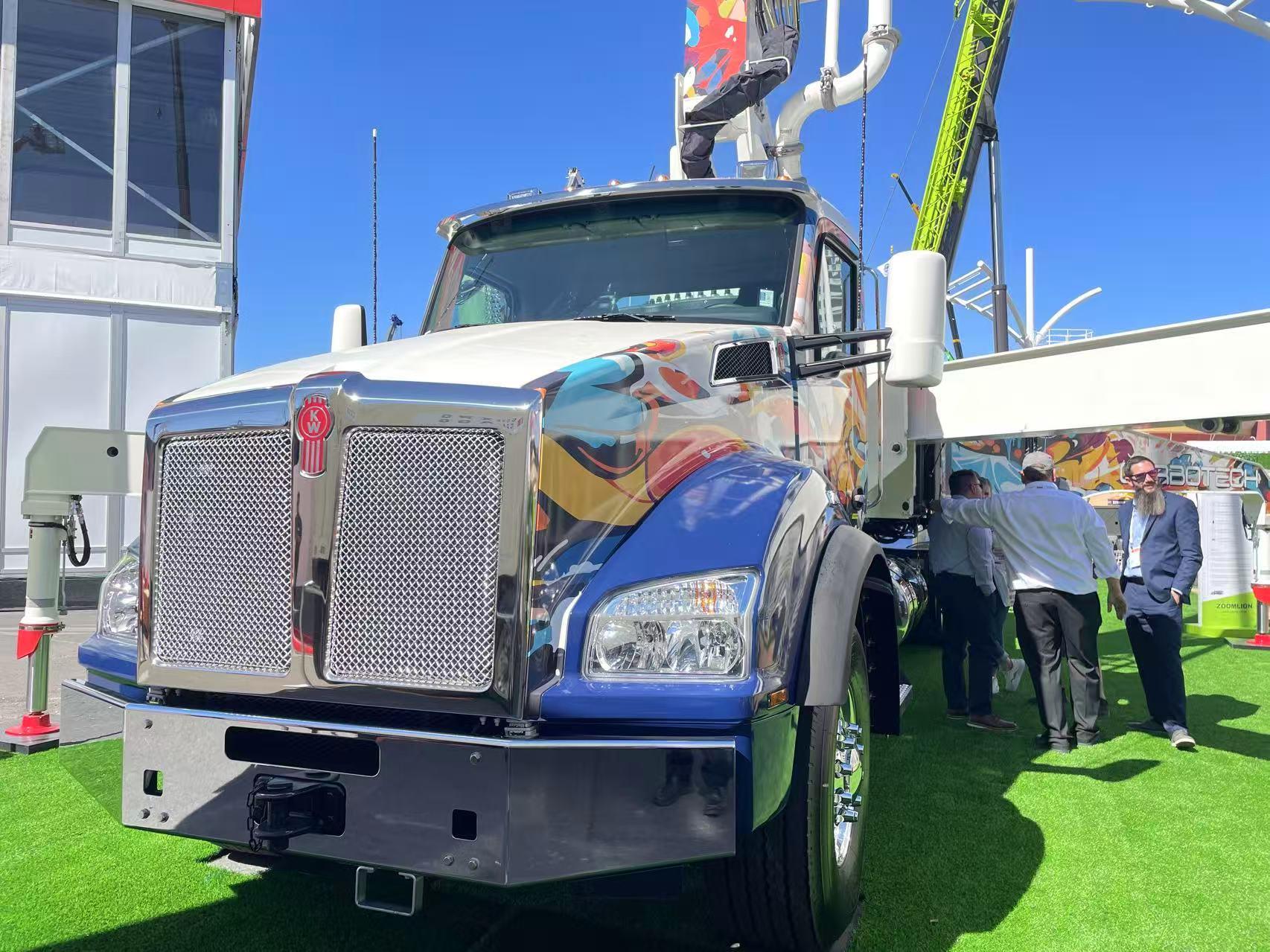 △中联重科打造的“美漫”涂装 宅男视频高清. 北美专用底盘混凝土泵车 .
