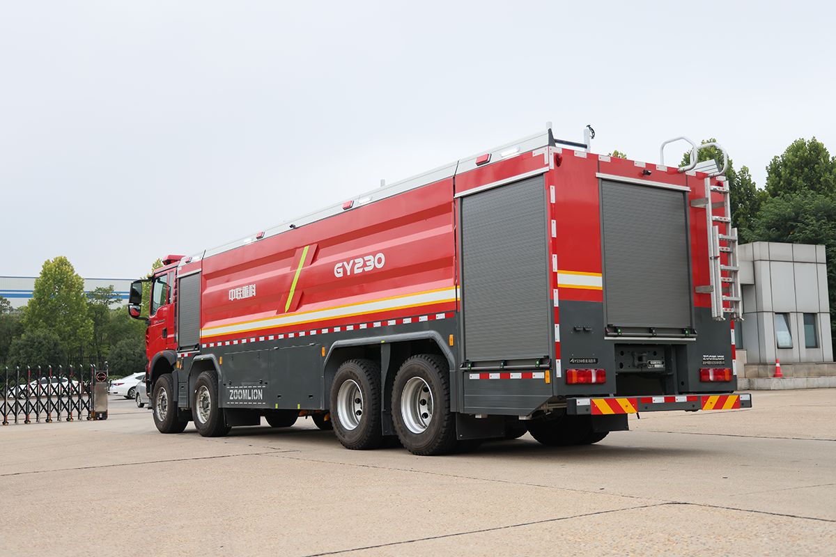 中联牌GY230-6型供液消防车,整车机动灵活,整车载液量大,装备供液(向其他灭火装备输送泡沫液)与吸液(迅速补给自带供液罐)两套独立的螺旋转子泵供吸系统,可向灭火装配远距离不间断输送泡沫原液,是城市应急救援消防队与企业专职消防单位必备首选灭火后勤保障利器。