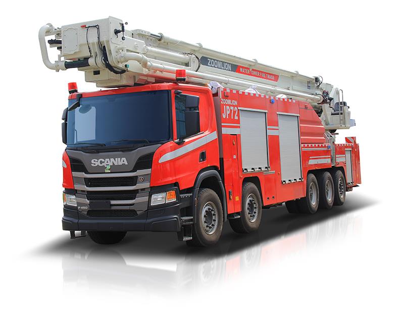 中联重科72米举高喷射消防车(以下简称高喷车)是一种高端消防高空灭火装备,主要用于城镇、工矿企业高层建筑以及石油、化工、油罐、仓库等高大建筑物的火灾扑救。