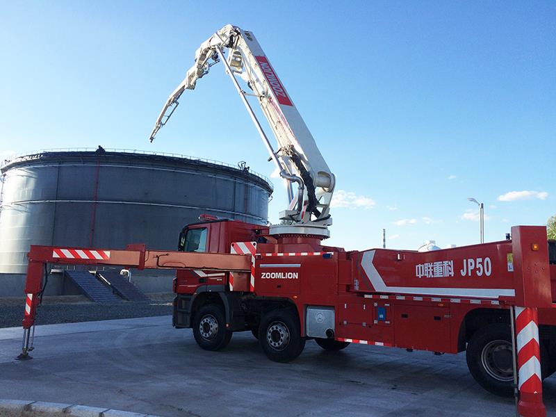 中联重科ZLF5411JXFJP50举高喷射消防车拥有世界**大灭火作业半径,作业高度50米,作业半径44米。能有效解决易爆、易辐射、高热等火灾现场常规消防车和消防员无法接近火场的问题,特别适合油罐、厂房、仓库、石油、化工等火灾的扑救。