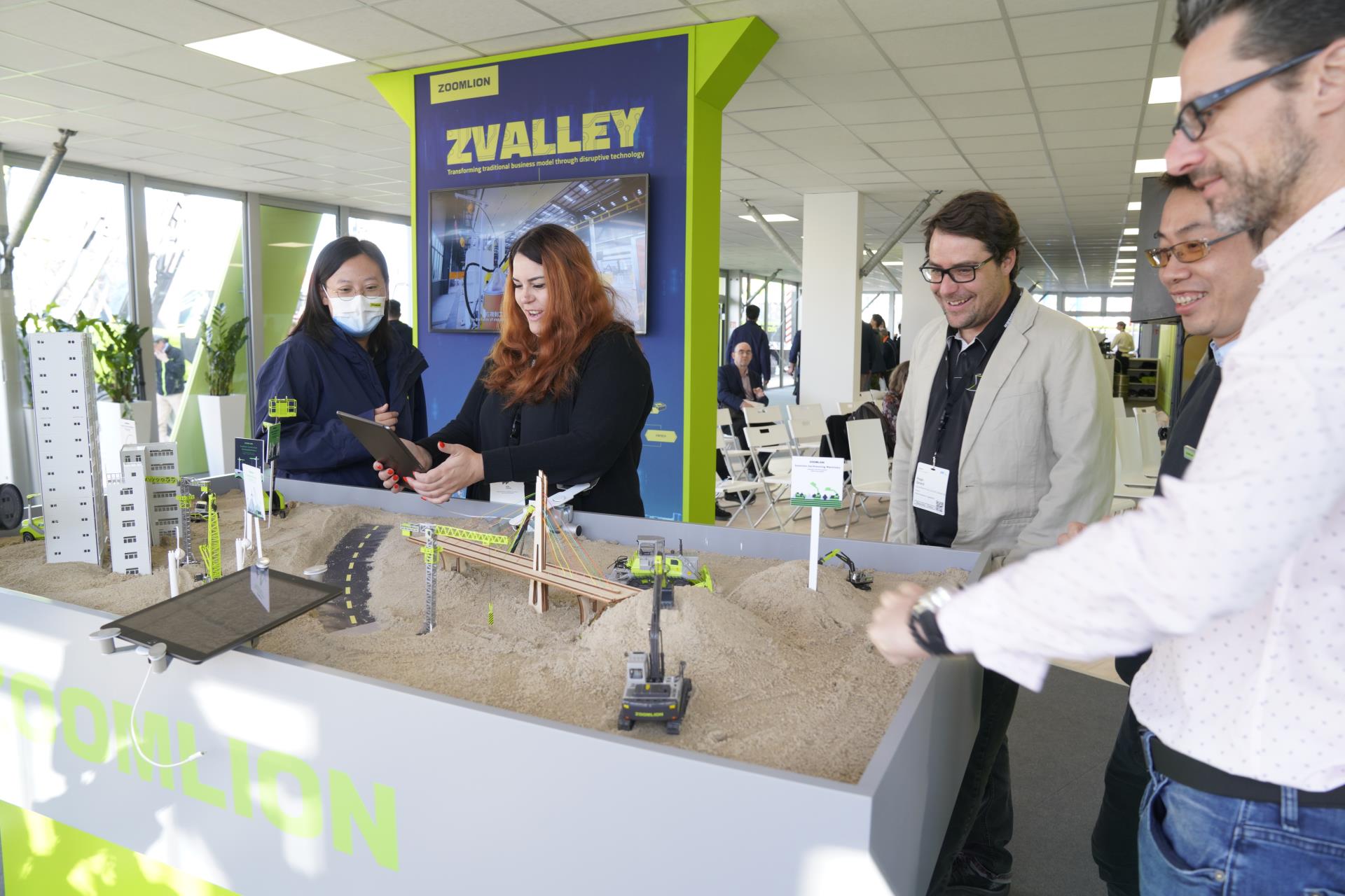 在展区一楼的互动体验区,中联重科打造了微景观建筑,通过实景VR对海外大型工程项目进行三维虚拟精确设计和施工模拟,让观众近距离感受工程机械工况和操作体验,还有互动PK赛,现场扫码打卡赢好礼等各种互动体验版块和LED互动屏,让观众更好地体验和感受到中联重科的新科技 宅男影视,新成果, 。