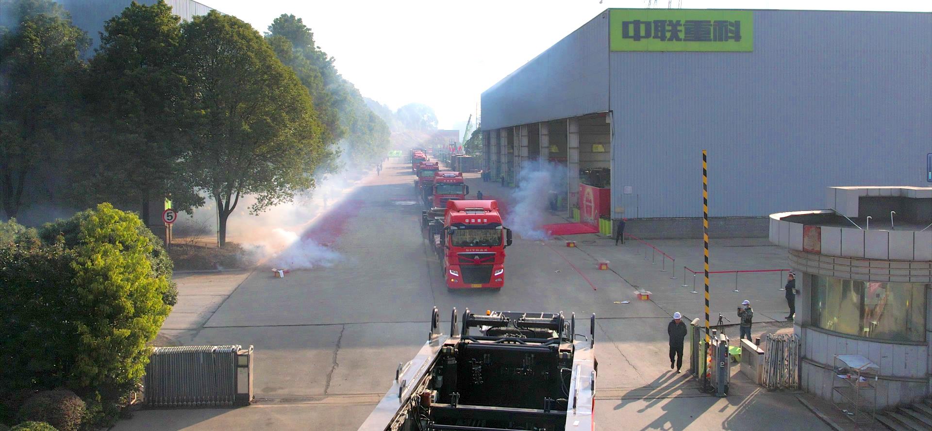 ▲中联重科智能高机的发车现场
