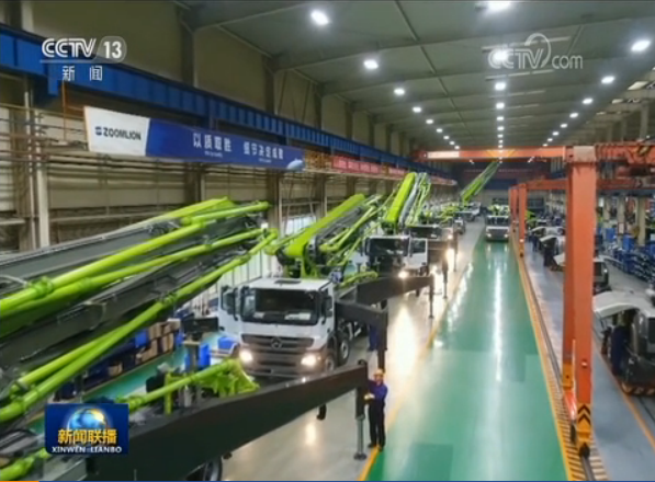 ▲央视新闻联播报道中的中联重科麓谷工业园泵车总装车间