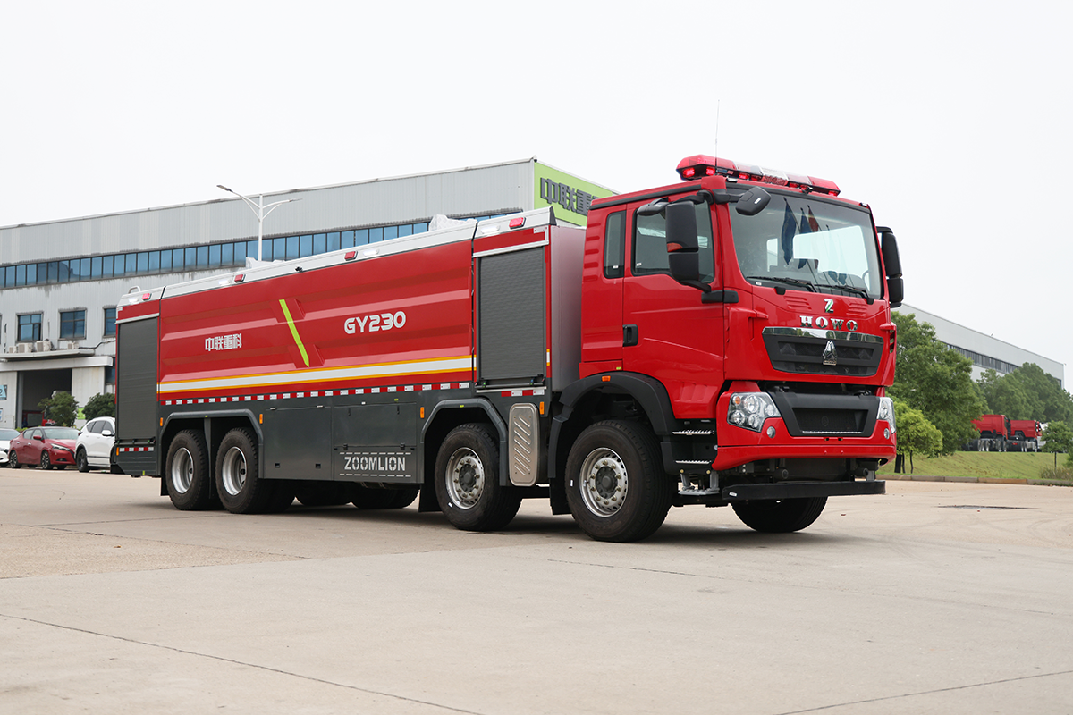 中联牌GY230-6型供液消防车,整车机动灵活,整车载液量大,装备供液(向其他灭火装备输送泡沫液)与吸液(迅速补给自带供液罐)两套独立的螺旋转子泵供吸系统,可向灭火装配远距离不间断输送泡沫原液,是城市应急救援消防队与企业专职消防单位必备首选灭火后勤保障利器。