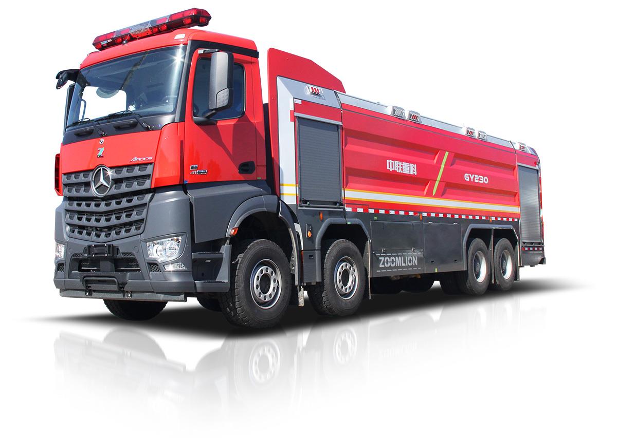 中联牌GY230A6型供液消防车,整车机动灵活,整车载液量大,装备供液(向其他灭火装备输送泡沫液)与吸液(迅速补给自带供液罐)两套独立的螺旋转子泵供吸系统,可向灭火装配远距离不间断输送泡沫原液,是城市应急救援消防队与企业专职消防单位必备首选灭火后勤保障利器。