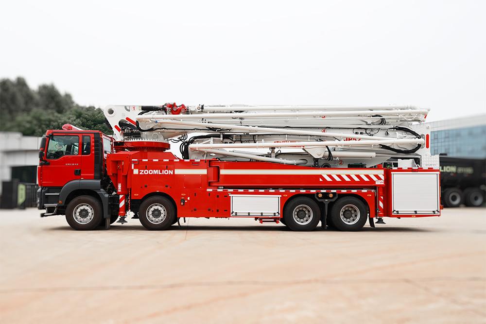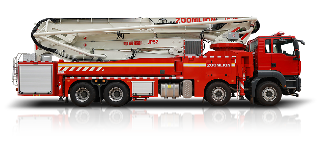 中联重科JP52型大跨距举高喷射消防车,结合国内外消防车的先进理念和消防实战创新设计而成,具备强大的灭火功能,整车性能优越,快速高效,操作性、安全性及智能化控制水平处于国际先进水平,是石油、石化、城市、库房等场所灭火的作战利器。