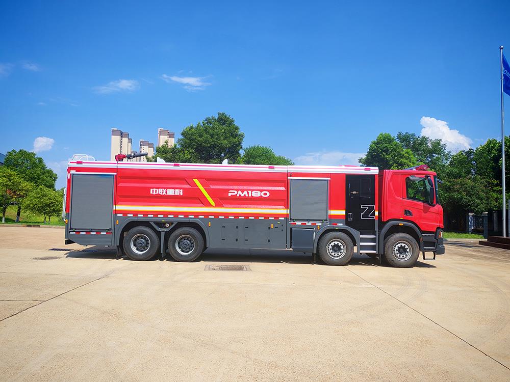 中联牌PM180C6/SC型泡沫消防车,是专门针对城市救援研制的主战型车辆,具备强大的灭火功能和综合救援能力。整车装备了进口消防泵炮,先进的泡沫系统,采用集成式控制面板,操作方便快捷,灭火效率高;全铝合金车身,自重轻,强度高,防腐蚀性能好,可随车携带多种抢险救援器材,是城市应急救援消防队与企业专职消防单位必备首选灭火利器。