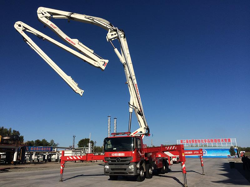 中联重科ZLF5411JXFJP50举高喷射消防车拥有世界**大灭火作业半径,作业高度50米,作业半径44米。能有效解决易爆、易辐射、高热等火灾现场常规消防车和消防员无法接近火场的问题,特别适合油罐、厂房、仓库、石油、化工等火灾的扑救。